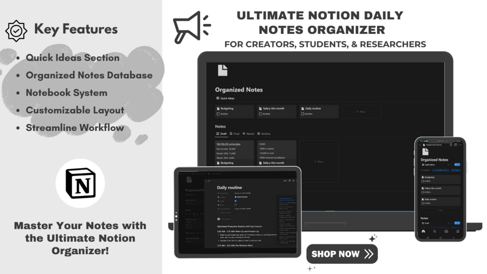 Ultimate Notion Daily Notes Organizer: For Creators, Students, & Researchers